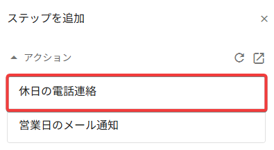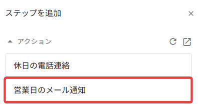 アクションの作成 で作成したメール通知アクションを追加します。