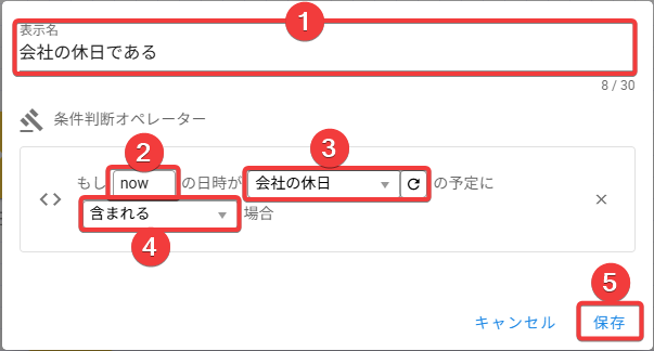 now) を入力します - 作成した「会社の休日」カレンダーを選択します