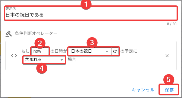 now) を入力します - 作成した「特別営業日」カレンダーを選択します