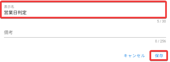 ダイアログが表示されるため、任意の表示名を入力し保存ボタンをクリックします。